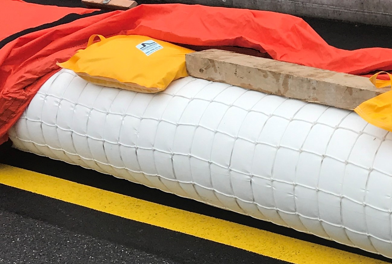 Säcke mit leichten Baustoffen, Kunststoffboxen, Ölwehr-Schläuche, kurz alles, was Sie greifbar haben und an der Netzhülle gegen Rutschen und Abrollen befestigen können, ist geeignet.