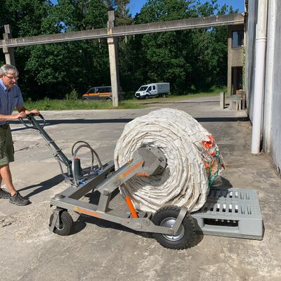 Dabei kann die Handbremse des Wagens so eingestellt werden, dass das Modul stramm aufgewickelt wird.